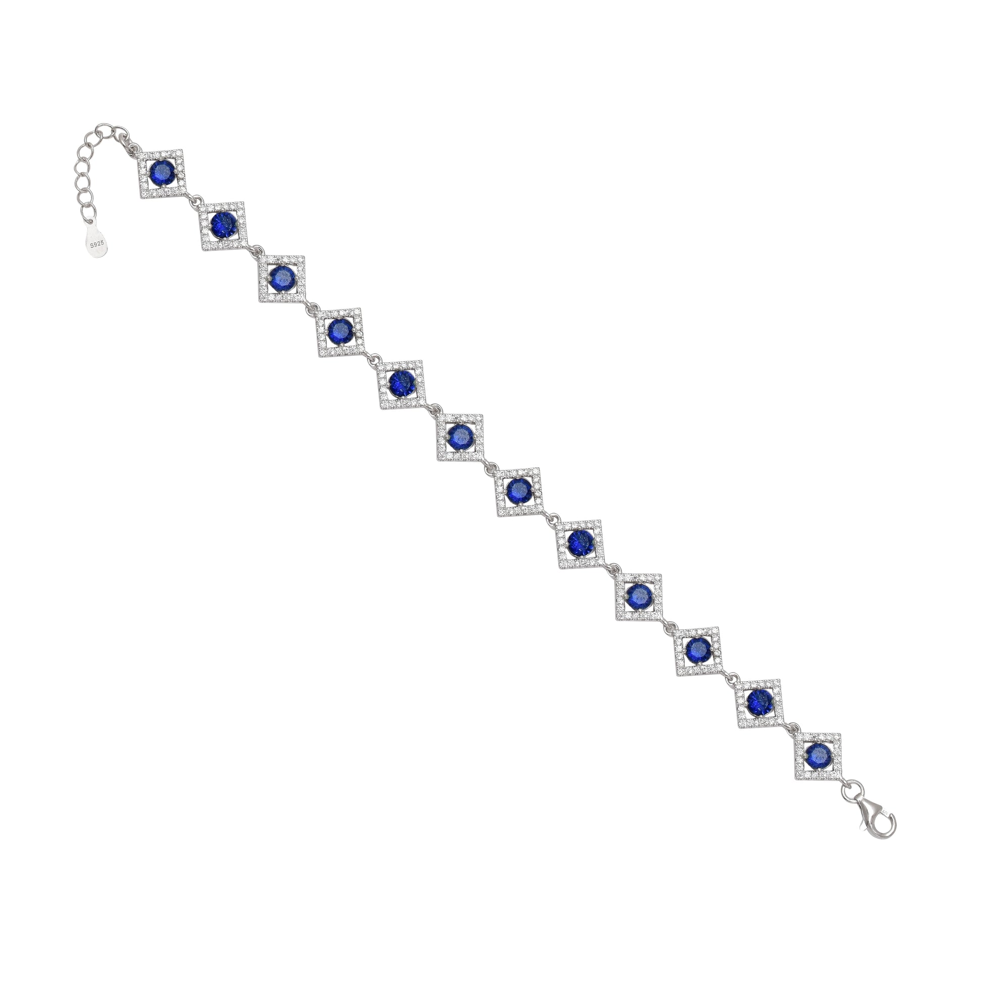 Introducing our stunning Blue Hydro American Diamond Bracelet with a Square Shape. This elegant bracelet features a captivating blue hydro stone, enhanced by sparkling American diamonds. Its unique square design, crafted in high-quality sterling silver, adds a touch of sophistication and style, perfect for any occasion.