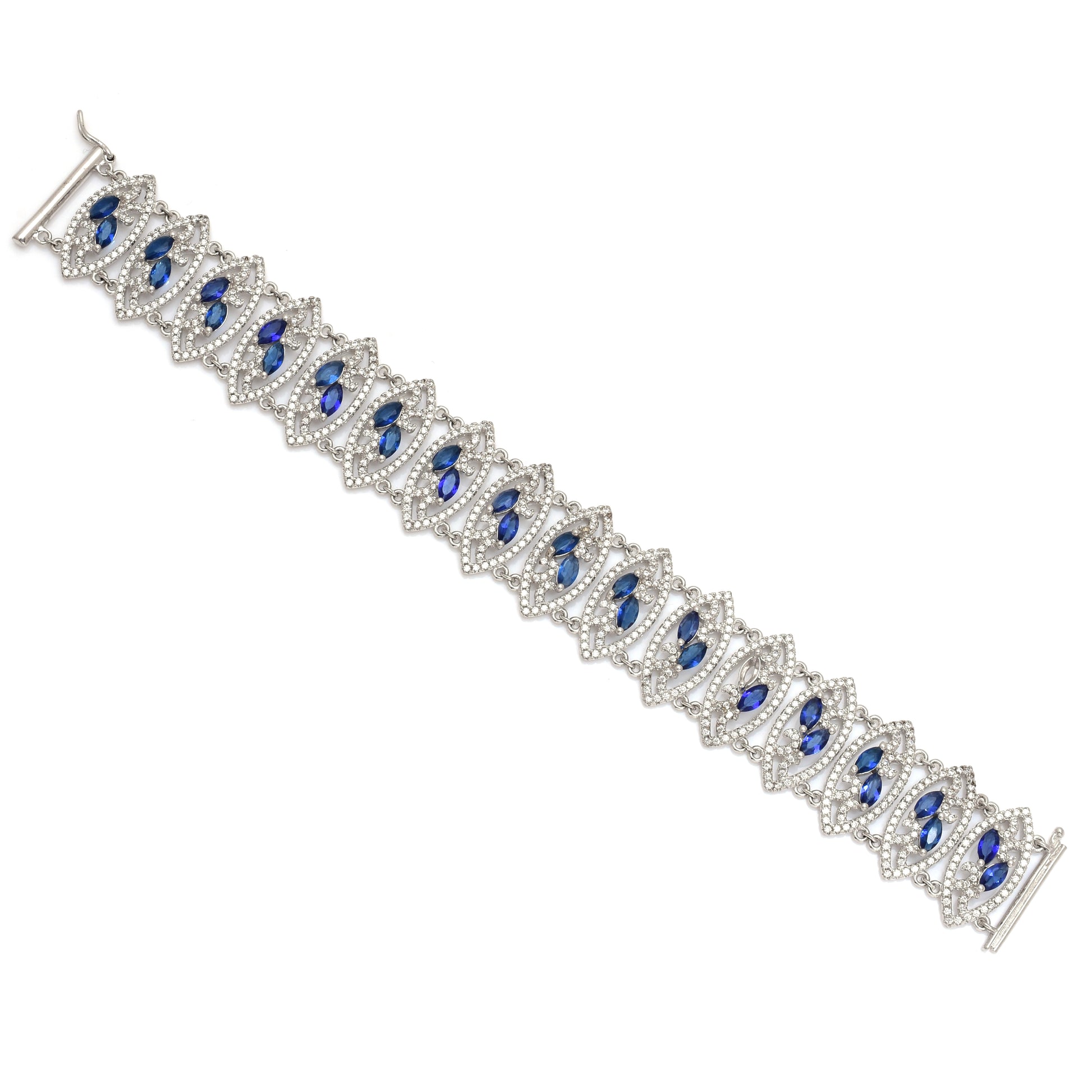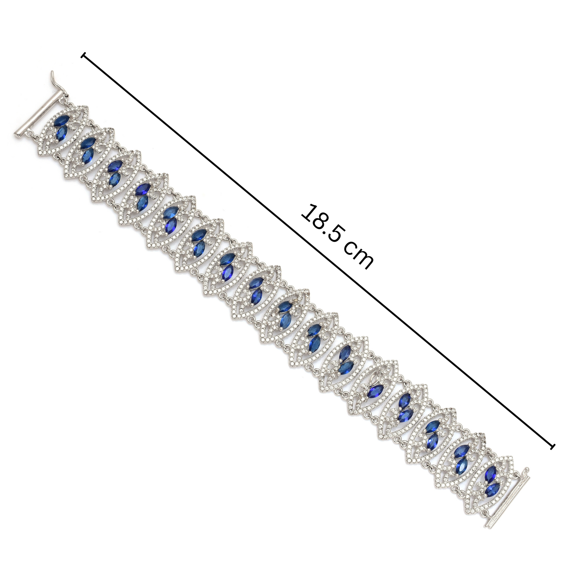 Our exquisite Blue Hydro Bracelet with American Diamonds, a dazzling combination of style and elegance. Crafted in sterling silver, this bracelet showcases a brilliant blue hydro stone adorned with sparkling American diamonds. Perfect for adding a touch of glamour and sophistication to your look, ideal for every occasion.