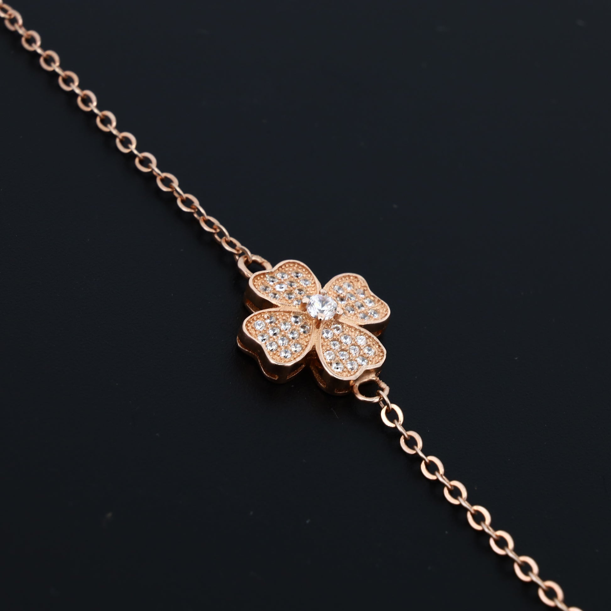 Experience elegance with the Blossom Glow Silver Bracelet with rose gold plating, expertly crafted from pure 925 sterling silver and finished with a radiant rose gold plating. Its delicate flower-shaped design embodies beauty and grace, making it a refined choice for daily wear or special occasions. Lightweight and comfortable, this bracelet features a polished finish with an anti-tarnish coating to ensure lasting shine. Perfect as a thoughtful gift for birthdays, anniversaries, or bridal celebrations, it combines timeless style with expert craftsmanship.
