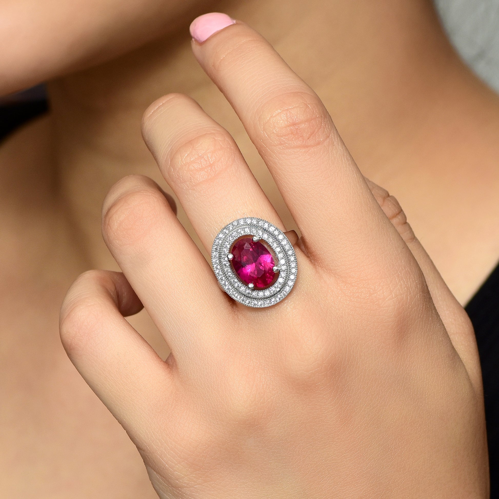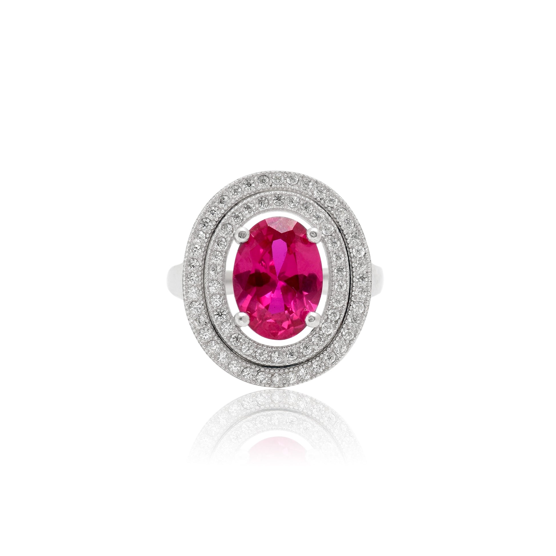 A beautiful blend of style and elegance. This stunning ring features a vibrant pink hydro quartz stone surrounded by sterling silver, creating a chic and sophisticated look. Perfect for everyday wear, its delicate design and vibrant color will make a statement. Sterling Silver, Nickel-Free, Hypoallergenic.