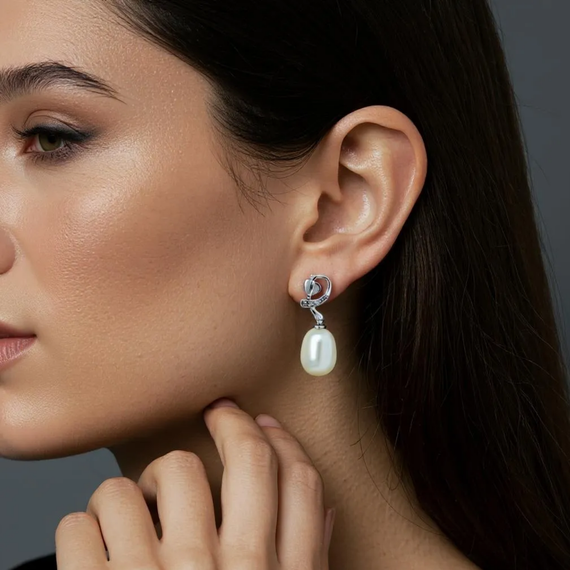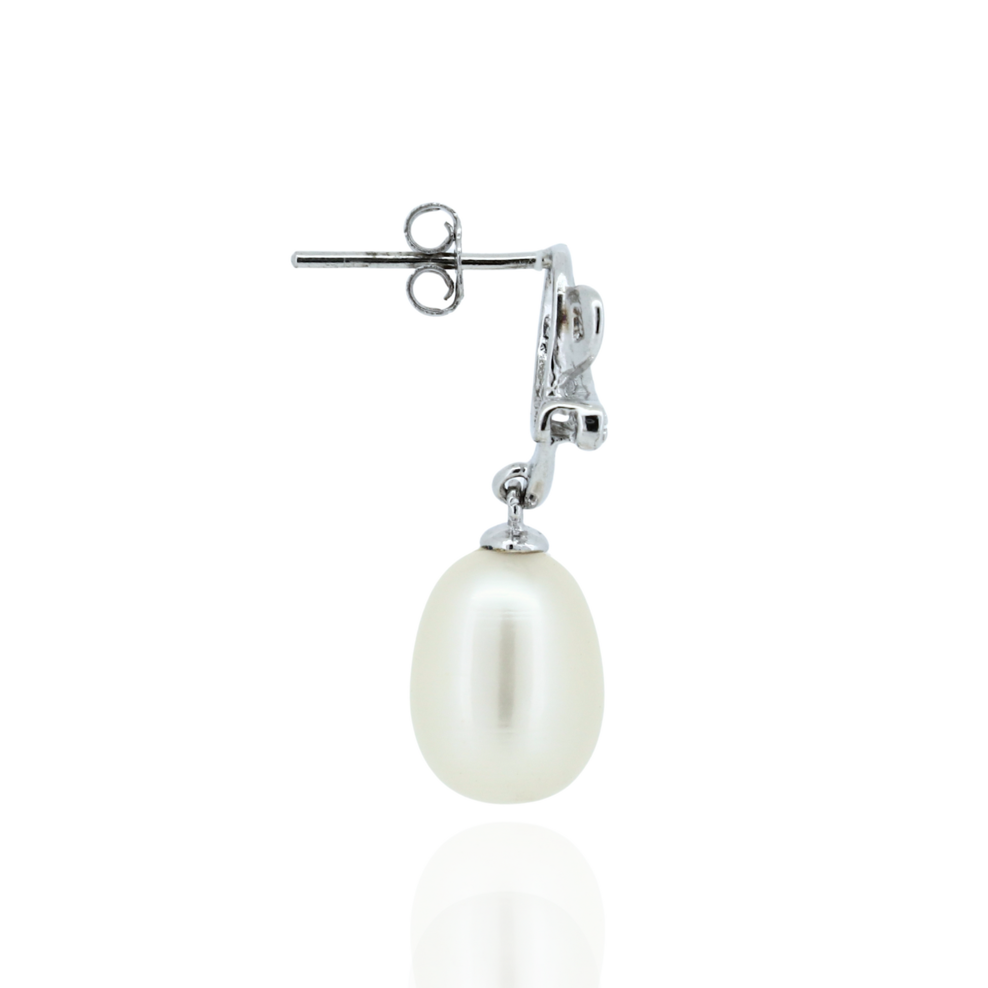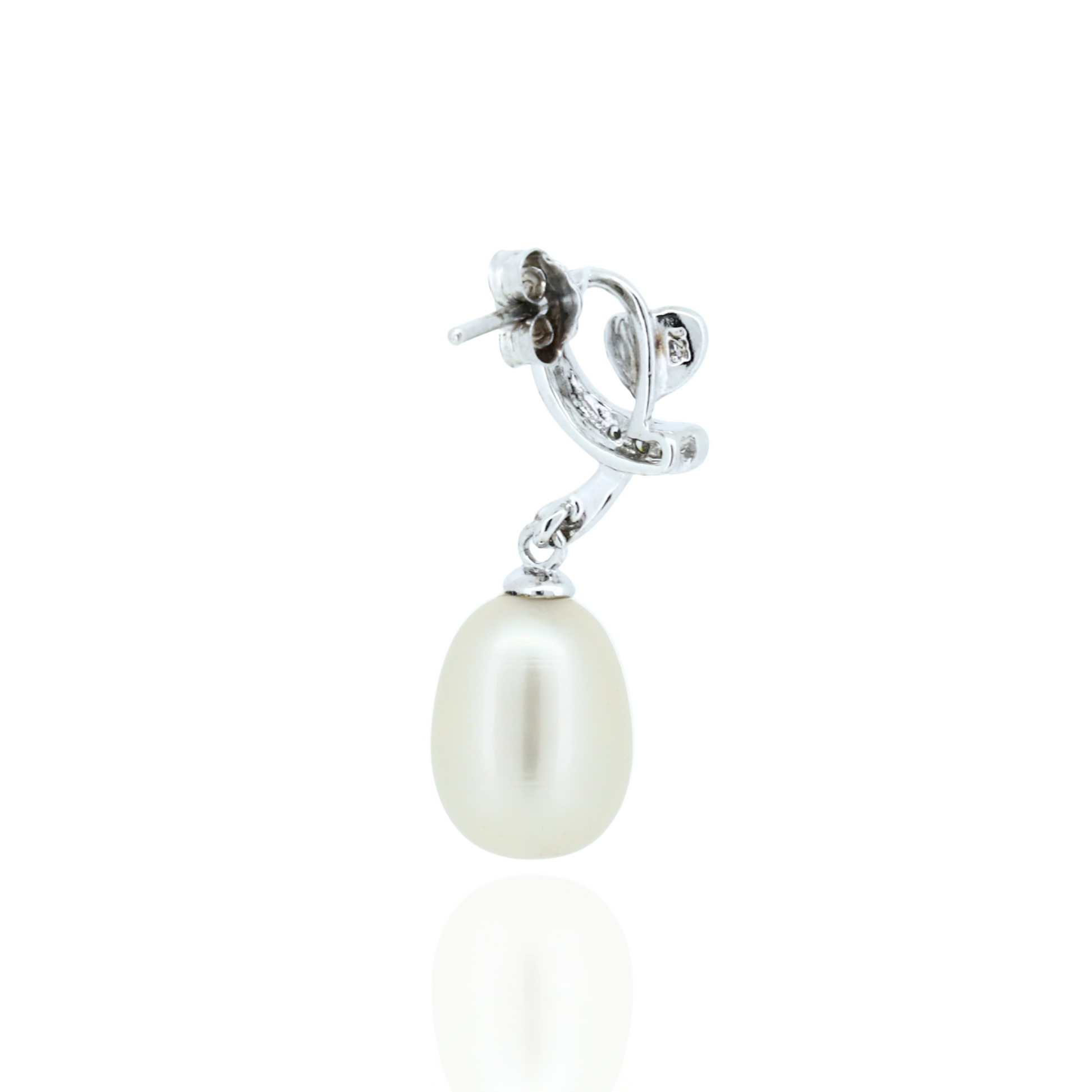 Crafted from hallmarked 925 sterling silver, these Blushing Pearl Drops feature an elegant oval white pearl centerpiece accented by sparkling American diamond . Finished with high-polish rhodium plating, they resist tarnish while offering a luxurious shine. Designed with secure push-back or screw-back closures, these medium to long dangle earrings combine timeless sophistication with expert craftsmanship. Perfect for weddings, festive occasions, or gifting, they complement both ethnic and western attire, symbolizing purity, grace, and femininity. Elevate your look with these refined silver pearl oval earrings enhanced by dazzling American diamonds.
