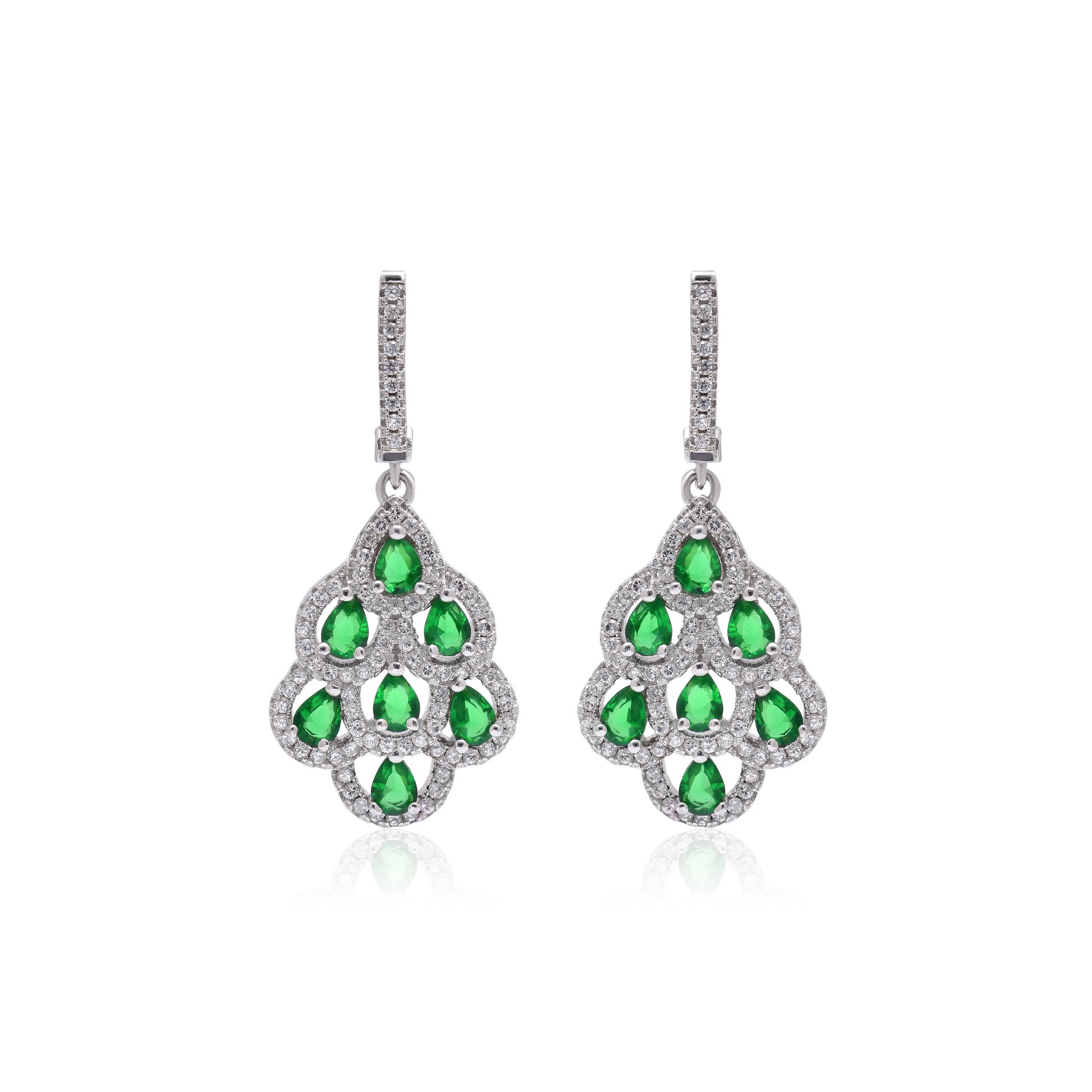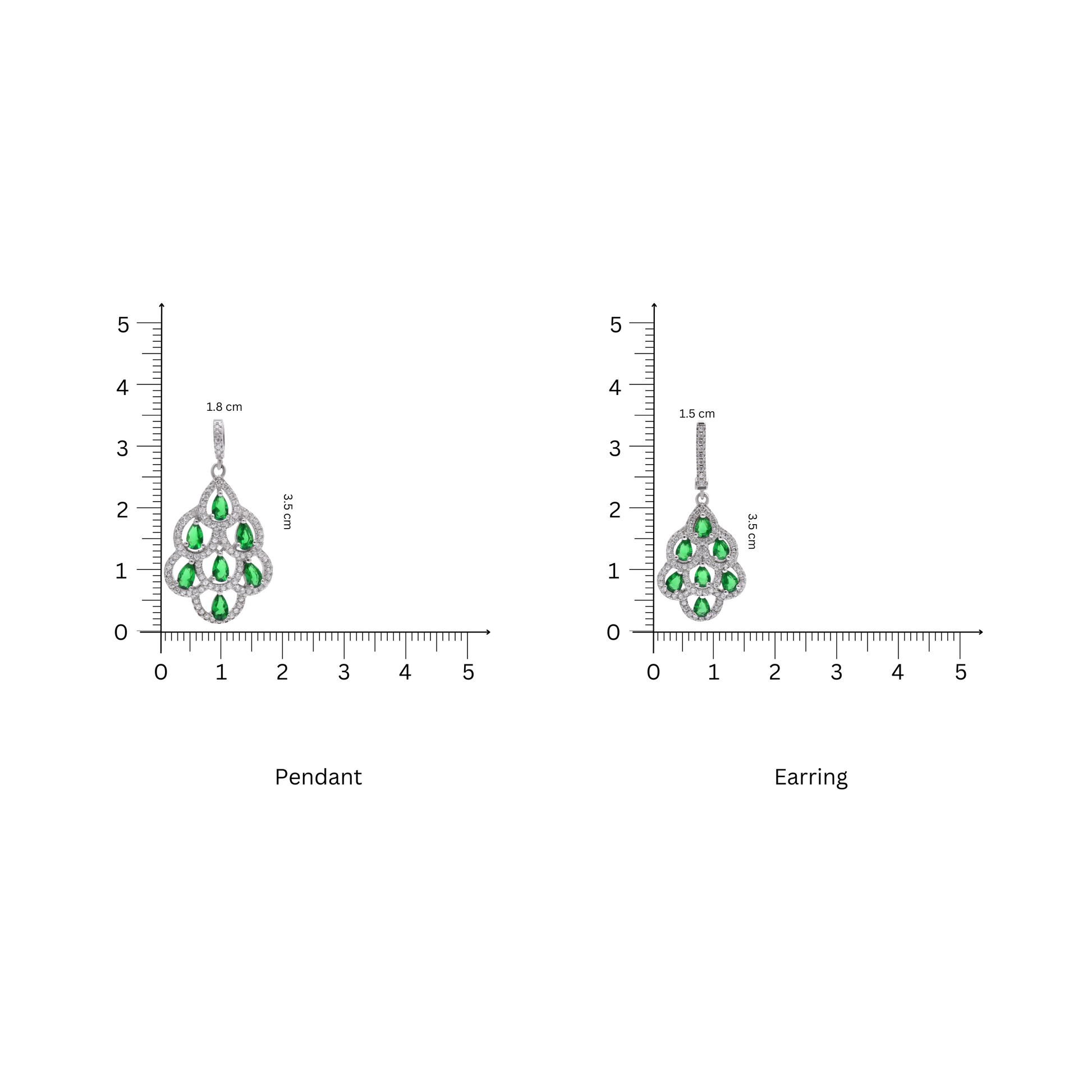 The Emerald Glow Sterling Set with American Diamond combines the allure of emerald with the brilliance of American diamonds. Crafted in sterling silver, radiates elegance and sophistication. Perfect for adding a touch of glamour to any ensemble, it epitomizes timeless beauty and luxury.