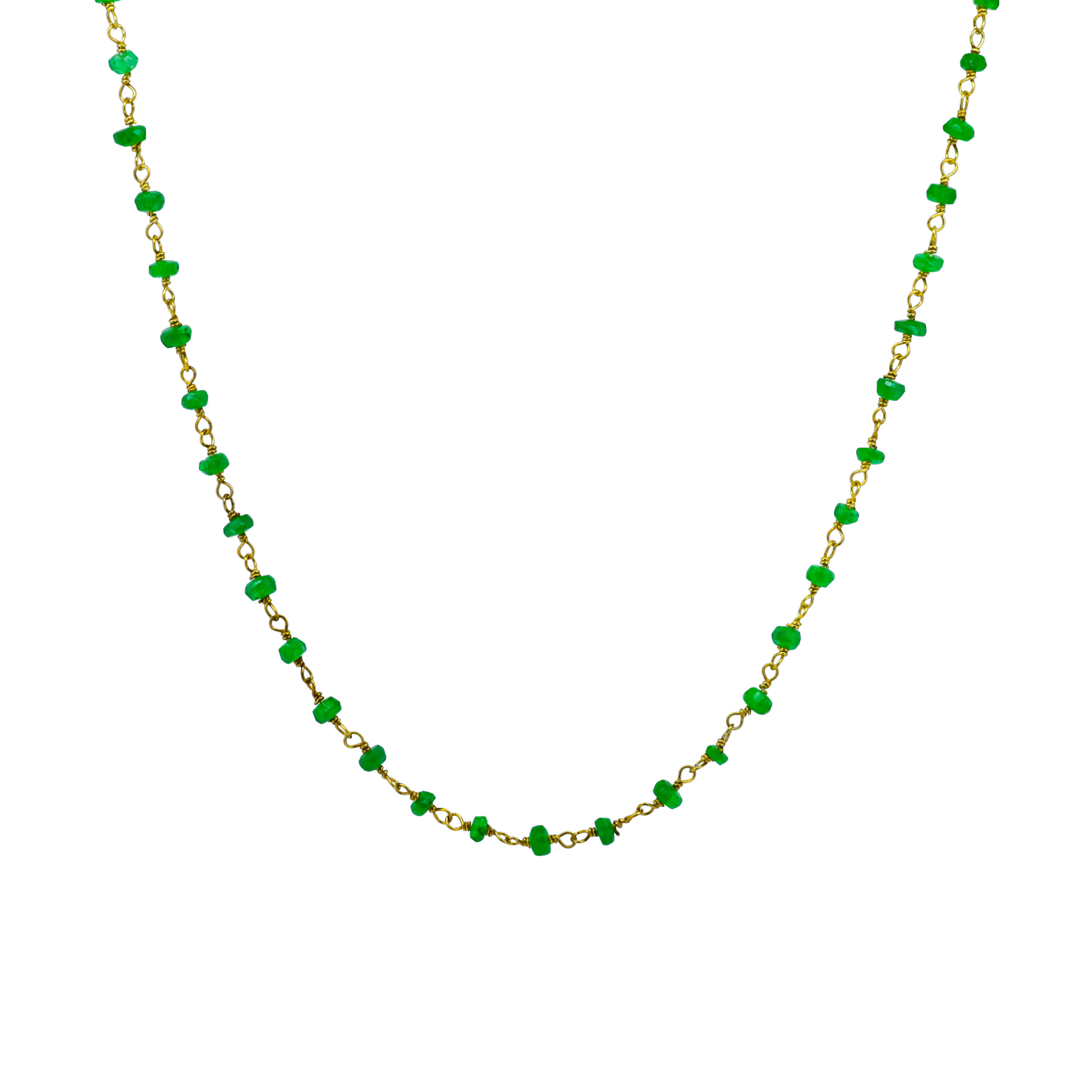 Elevate your style with the Emerald Aura Onyx Gold-Plated Silver chain, expertly crafted from 925 sterling silver and finished with luxurious gold plating. Featuring a natural green onyx gemstone, this necklace symbolizes balance and healing while delivering a sophisticated look. Its rich golden finish enhances any outfit, and its lightweight yet durable design ensures comfort for daily wear or special occasions. Perfect for those seeking a blend of elegance and meaningful symbolism, this piece stands out as a refined accessory in any jewelry collection.