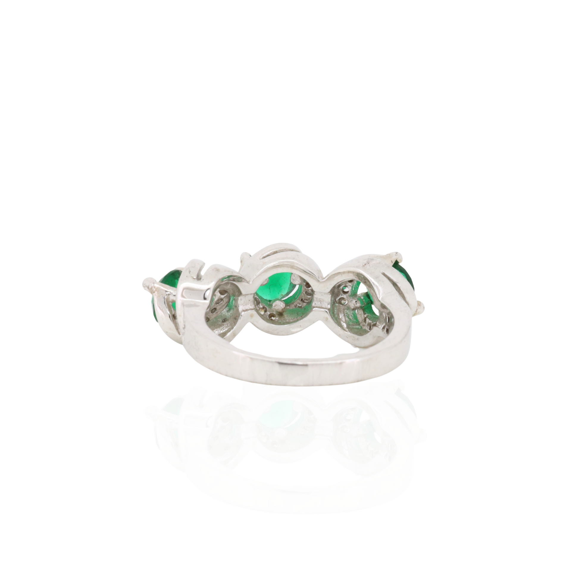Experience the elegance of the Emerald Trio Diamond Ring, crafted from genuine 925 sterling silver with a premium finish. This exquisite piece showcases three vibrant green hydro gemstones, beautifully accented by sparkling American diamonds in a distinctive triple-stone design. Its balanced blend of boldness and refinement ensures a comfortable fit for daily wear or special occasions. Ideal as a meaningful gift for engagements, anniversaries, or festive celebrations, this ring stands out as a timeless addition to any jewelry collection.
