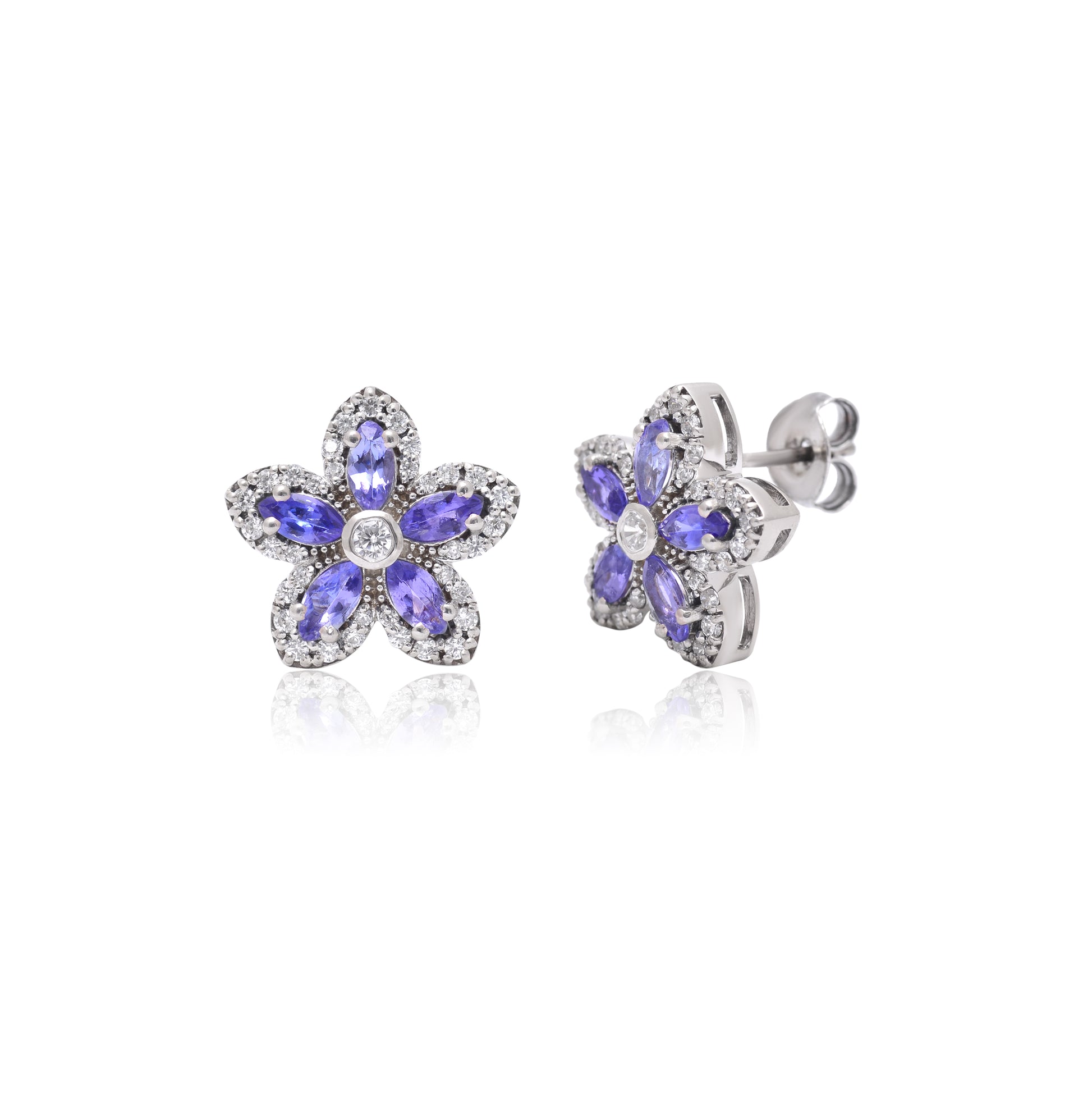 The Floral Charm Earring features a delicate flower-inspired design adorned with a radiant Tanzanite stone. Crafted in premium silver, its elegant petals and deep violet hue bring a graceful, feminine touch. Perfect for special occasions or everyday elegance, this Tanzanite earring adds timeless beauty to any jewelry collection with floral flair.