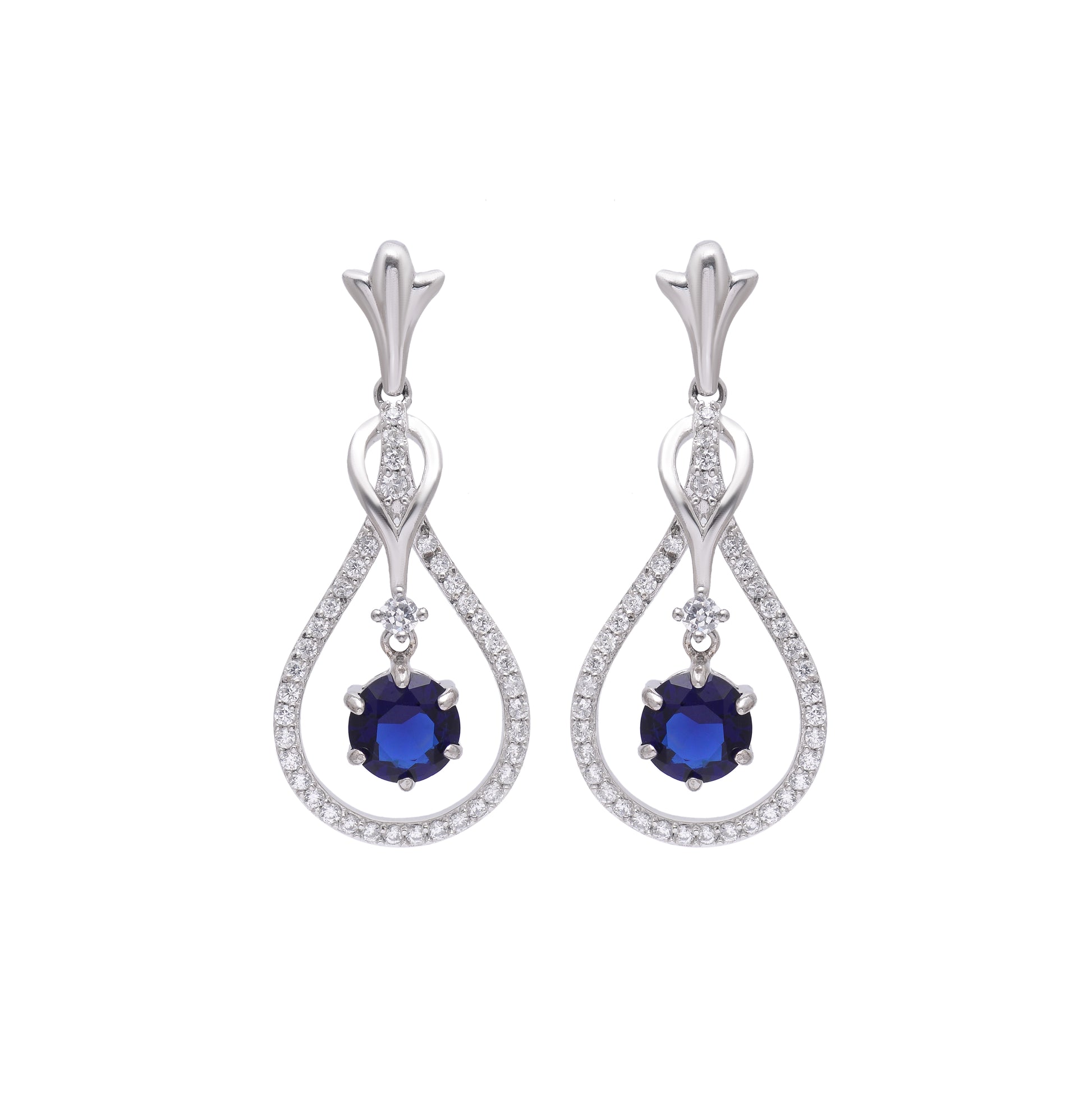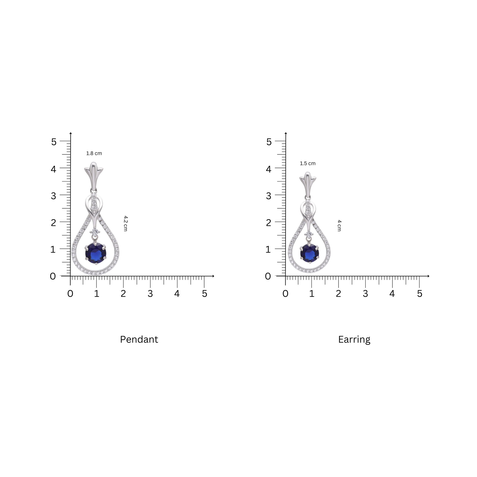 This Set captures the essence of a tranquil sea with its deep blue hues and shimmering American diamonds. Crafted in sterling silver, this set includes a Pendant ,and, earrings, radiating elegance and sophistication, ideal for adding a touch of ocean-inspired glamour to any ensemble.