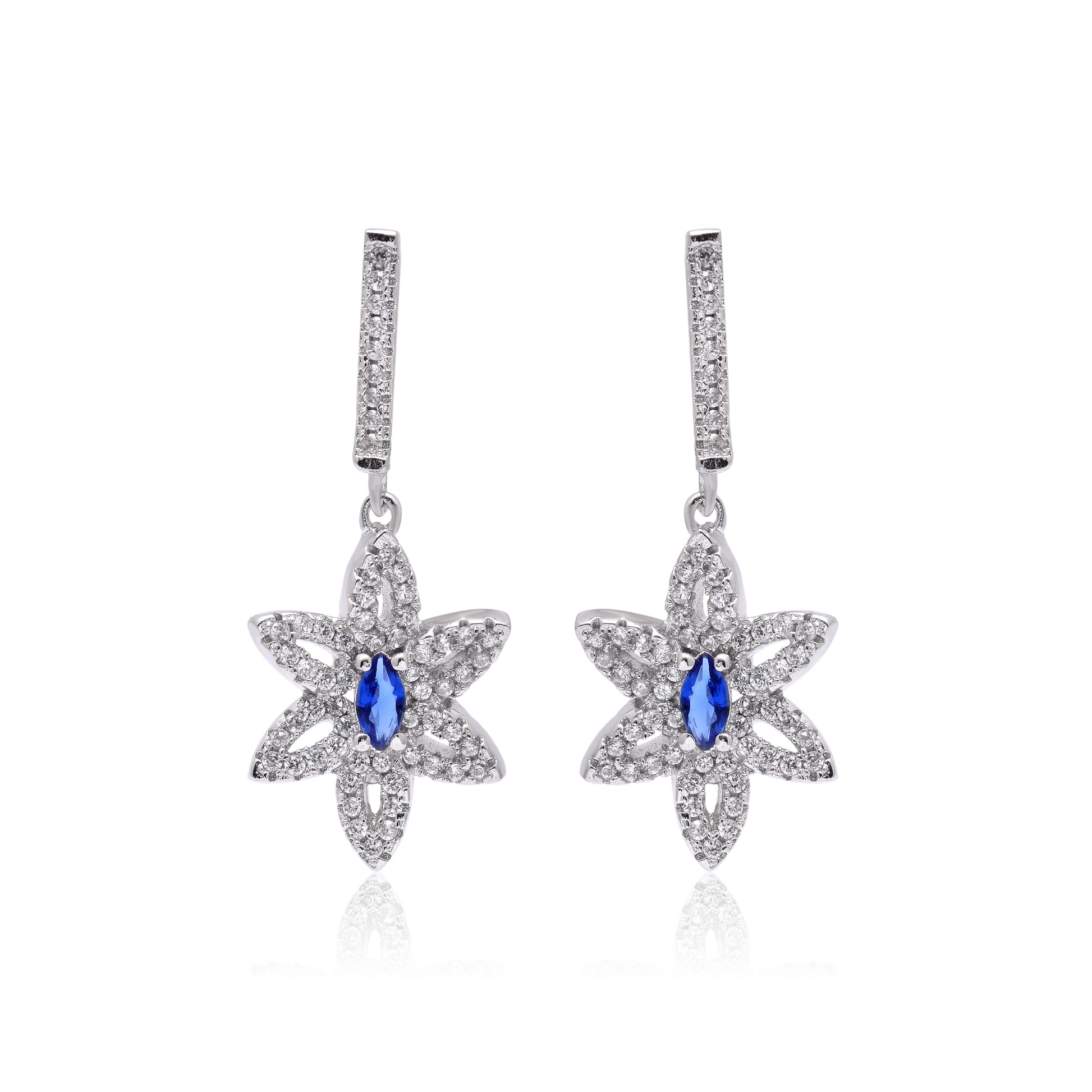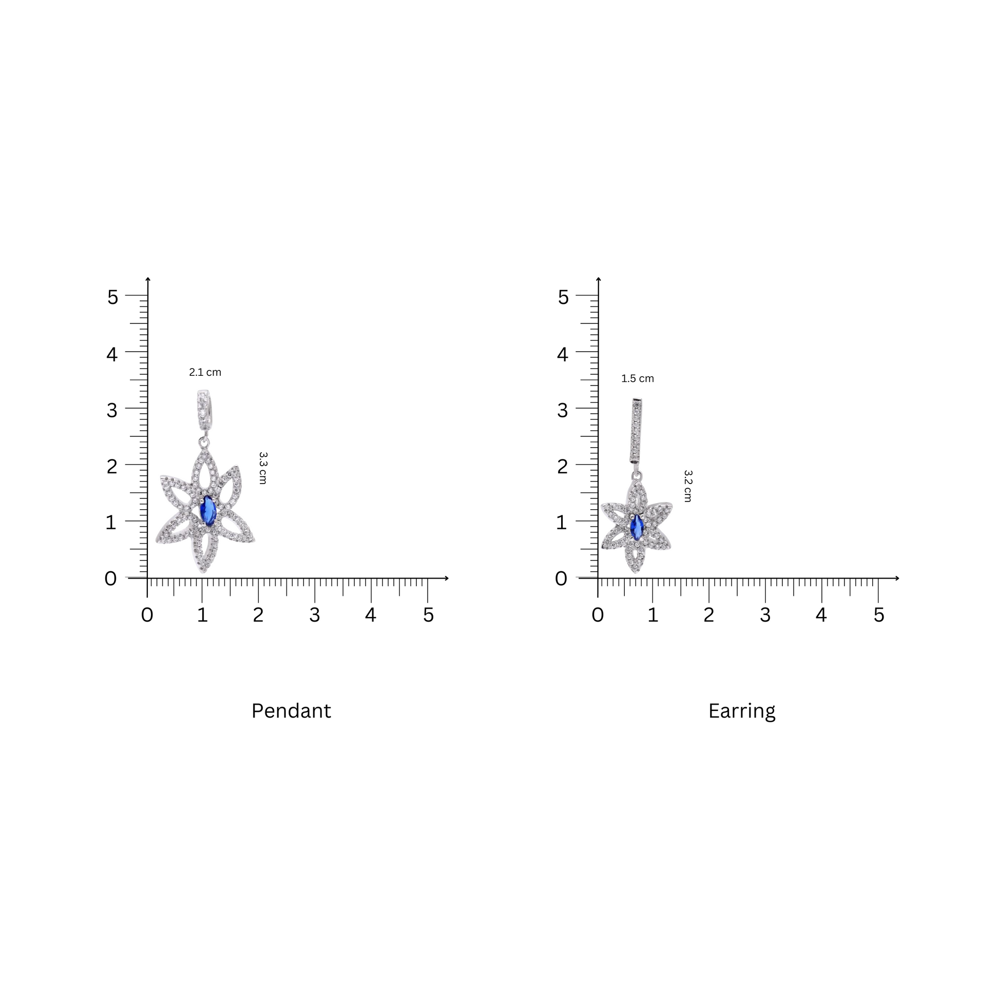 The Sapphire Cascade Sterling Set with American Diamond is a stunning ensemble featuring deep blue sapphire hues complemented by sparkling American diamonds. Crafted in sterling silver, it exude elegance and charm. Perfect for adding a touch of sophistication to any occasion, it embodies timeless beauty and luxury.