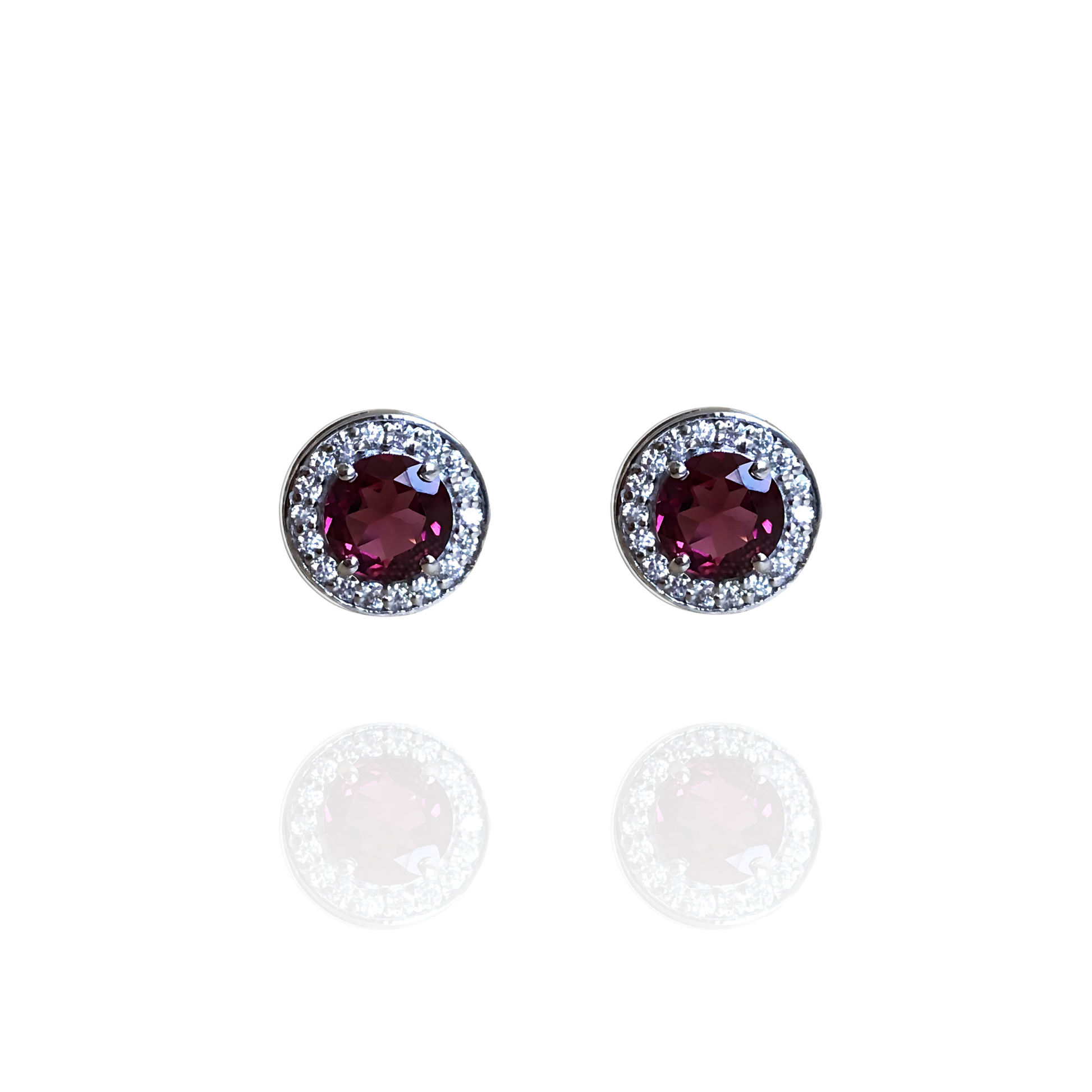 Velvet Garnet Studs feature natural garnet gemstones with a deep crimson-red hue, set in high-polish sterling silver (925) for lasting shine. Their halo design is accented by micro-set cubic zirconia, creating an elegant and radiant appearance. Lightweight and equipped with secure push-back closures, these garnet silver earrings are ideal for daily wear or special occasions. Hypoallergenic and nickel-free, they provide comfort for sensitive skin. Perfect as sterling silver stud earrings and January birthstone jewellery, these red stone silver earrings combine sophistication with expert craftsmanship.